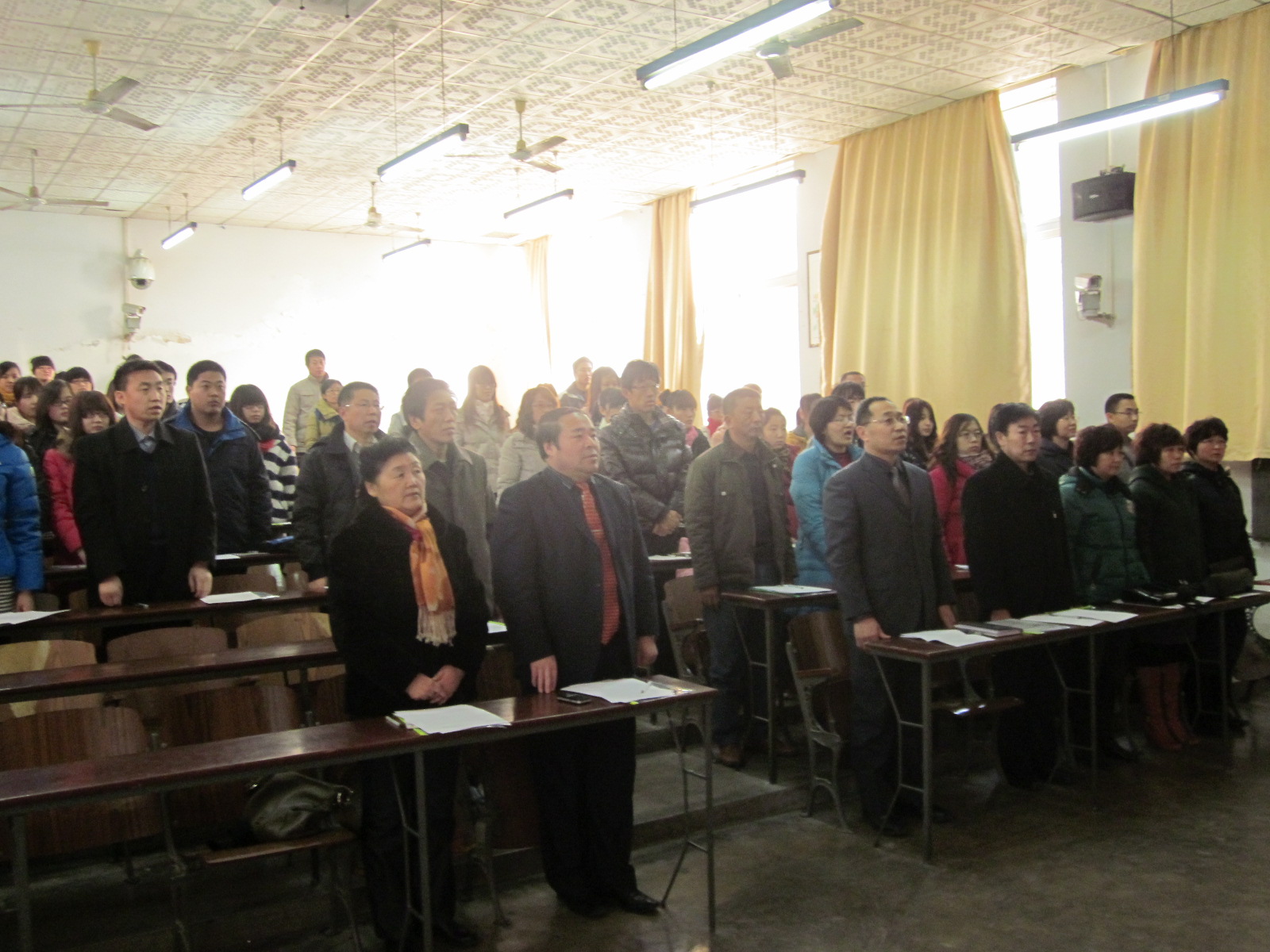 与会党员一起演唱国歌