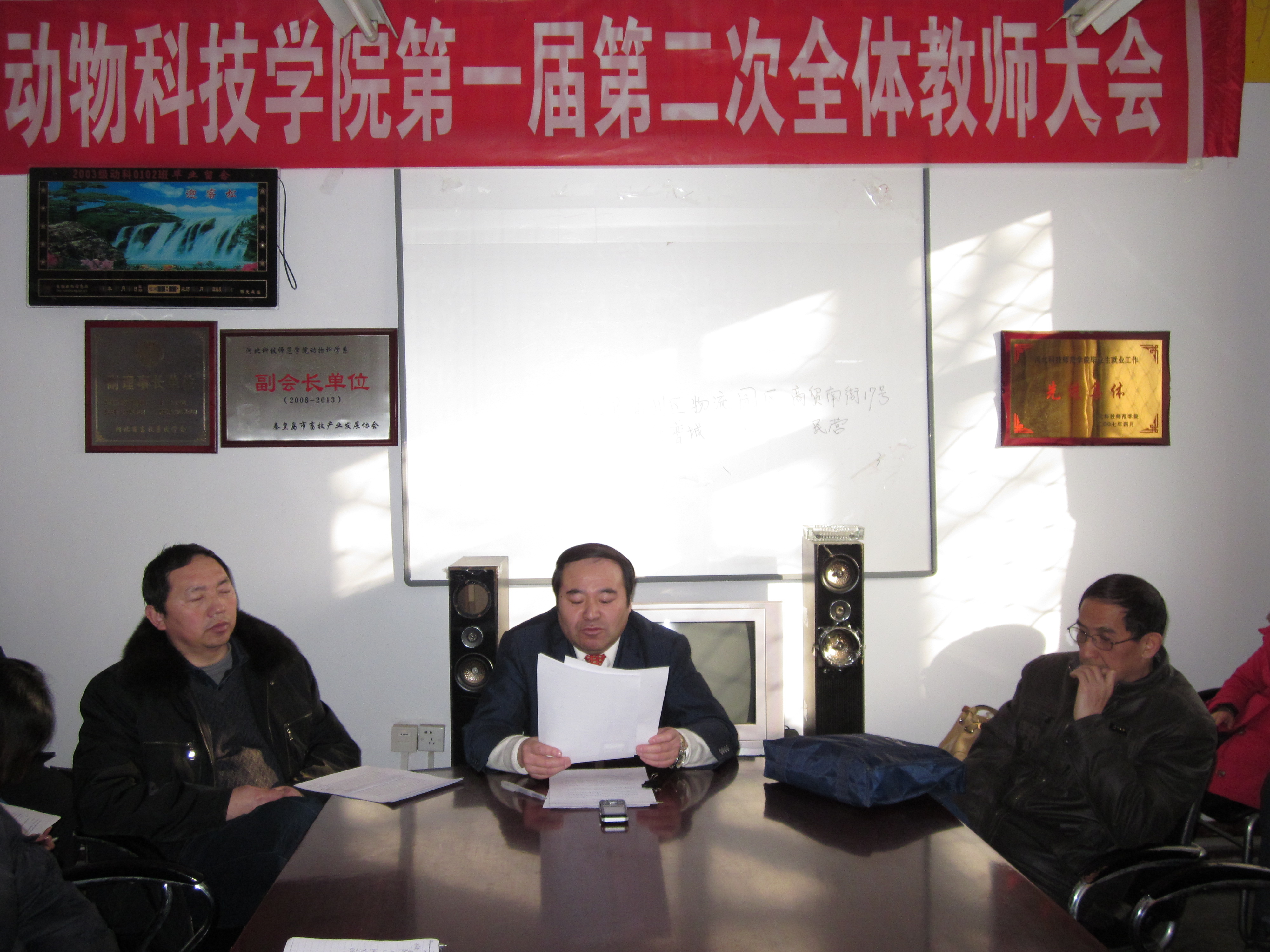 2011年12月23日下午,太阳成tyc122cc集团全体教师在本院会议室举行太阳成tyc122cc集团第一届