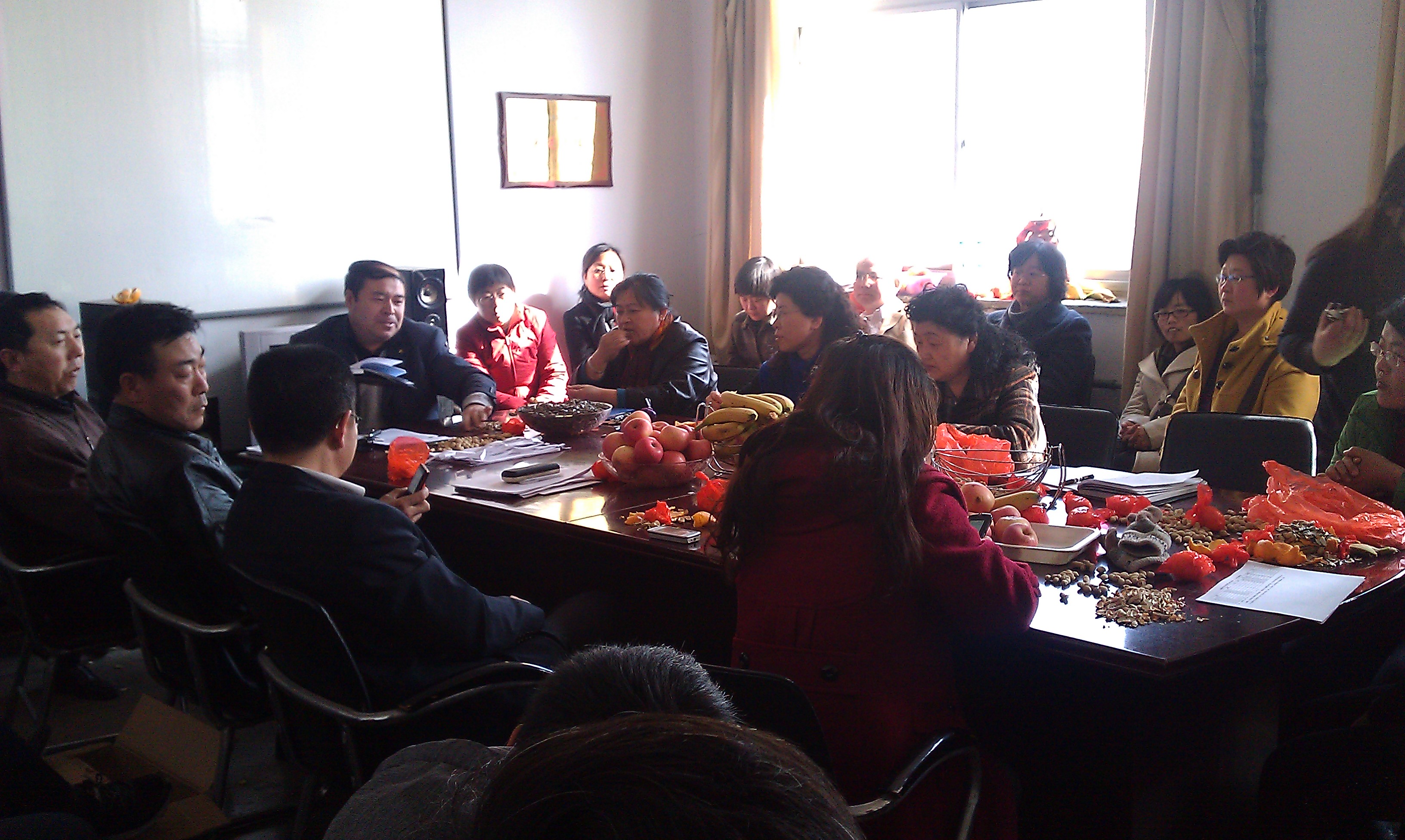 座谈会在一片祥和、欢乐的气氛中展开,公司男教师为女教师送上节日祝福,全体教师一起庆祝“三