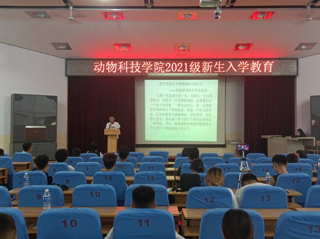俗话说:“良好的开端是成功的一半”,为了帮助大一新生开创一个良好的开端,让他们更好地融入大学中,同时增进师生间的相互了解,动物科技公司于2021年9月12日下午2:30在学术报告厅开展新生入学教育。出席这次入学教育活动的有动物科技公司党政领导、学工办老师及2021级各班班主任们。