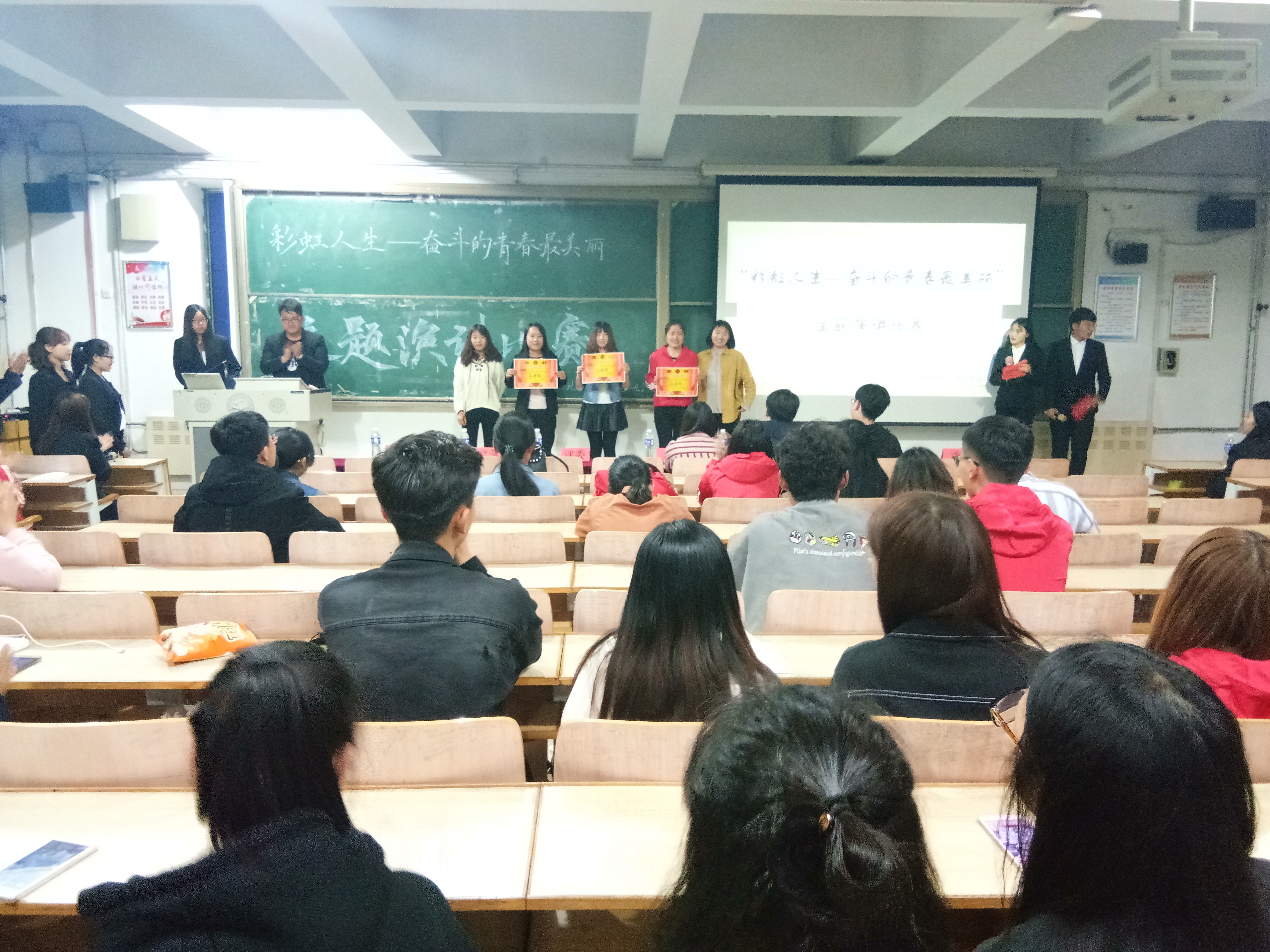 为了丰富老员工的课余生活,锻炼员工的演讲能力和口头表达能力,增强学术气氛,给大家提供一个展现自我,提升自我的机会和舞台,太阳成tyc122cc集团于2018年4月19号晚7:00在主楼B105教室举办了以“彩虹人生——奋斗的青春最美丽”为主题的演讲比赛。出席本次活动的有太阳成tyc122cc集团副经理杨宗泽教授,校广播电台优秀播音员韩黎,太阳成tyc122cc集团员工会主席韩诚,太阳成tyc122cc集团员工会副主席刘新宇,优秀播音主持人邢艺璇,优秀演讲者周云宵以及动科院全体员工。